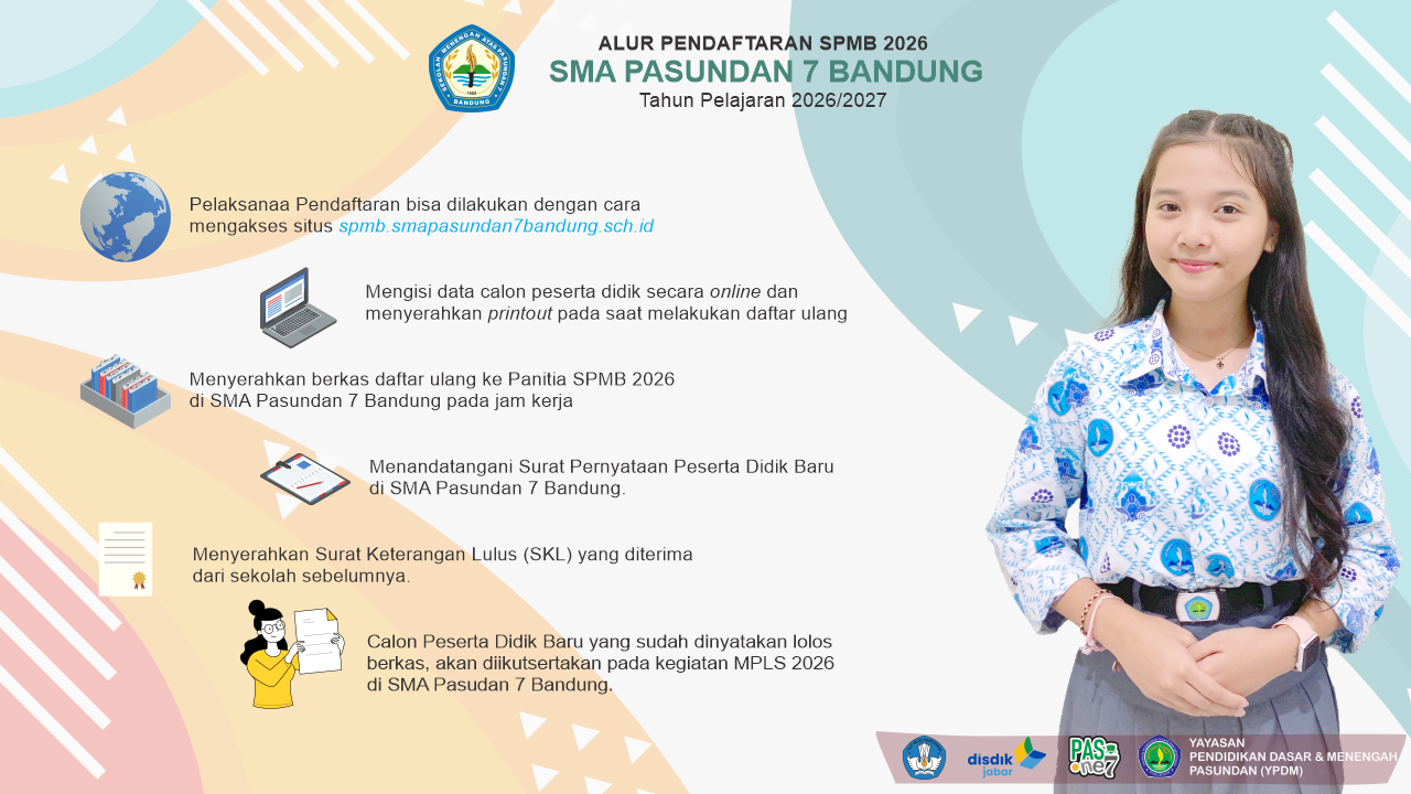 SMA PASUNDAN 7 BANDUNG menyediakan SPMB secara online diharapkan proses SPMB dapat berjalan cepat dan bisa dilakukan dimanapun dan kapanpun selama sesi SPMB Online dibuka. Proses pendaftaran calon siswa baru di masa serba digital ini dan terhambat oleh jarak jika datang secara langsung, bisa mengakses website SPMB Online SMA PASUNDAN 7 BANDUNG.